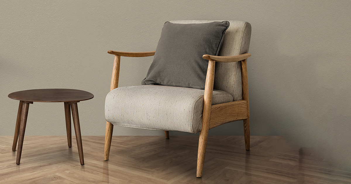 聚酯纖維仿麻織表布、泡棉、連結式彈簧、S型彈簧、實木骨架、塑料椅腳